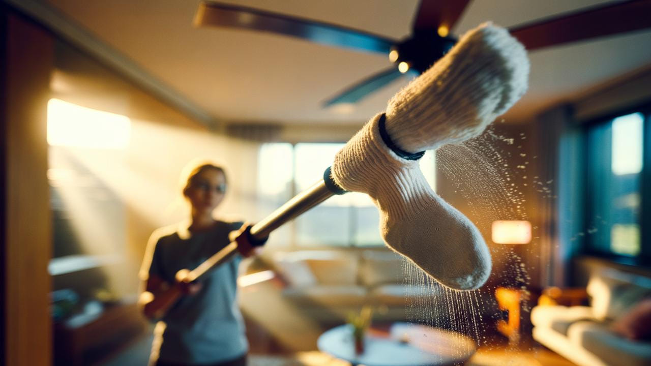 గాలిలోని తేమ, ధూళి కణాలు కలిసి ఫ్యాన్ రెక్కలపై నల్లటి జిగురు పొరను ఏర్పరుస్తాయి. ఈ మురికి ఫ్యాన్ వేగాన్ని తగ్గించి, గాలి వేడెక్కేలా చేస్తుంది. అందువల్ల క్రమం తప్పకుండా సీలింగ్ ఫ్యాన్ శుభ్రపరచడం చాలా ముఖ్యం. పాత దిండు కవరును తీసుకుని నిచ్చెన లేదా స్టూల్ ఎక్కి ఫ్యాన్ రెక్కలలో ఒకదాని లోపల పెట్టాలి. రెక్క కవరు లోపల ఉంటుంది. ఇప్పుడు రెక్కను రెండు చేతులతో పట్టుకుని మీ వైపుకు లాగాలి. దీంతో మురికి అంతా కవరు లోపల చిక్కుకుని, కిండ పడకుండా ఉంటుంది. ఫ్యాన్ బాగా మురికిగా ఉంటే కేవలం కవర్ను తీసివేయడం వల్ల ప్రయోజనం ఉండదు. ఒక స్ప్రే బాటిల్లో 2 టేబుల్ స్పూన్ల తెల్ల వెనిగర్, 1 టేబుల్ స్పూన్ డిష్వాషింగ్ లిక్విడ్ను కలపాలి. దానిని బ్లేడ్లపై స్ప్రే చేసి, 2 నిమిషాల పాటు అలానే వదిలేయాలి.